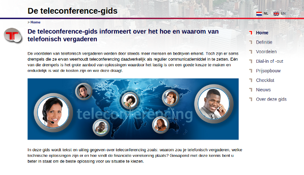 De Teleconference-gids is een rijke bron van informatie over telefonisch vergaderen. U vindt hier do's en don'ts en veel uitleg over de verschillende soorten diensten die u zoal tegenkomt in de markt.